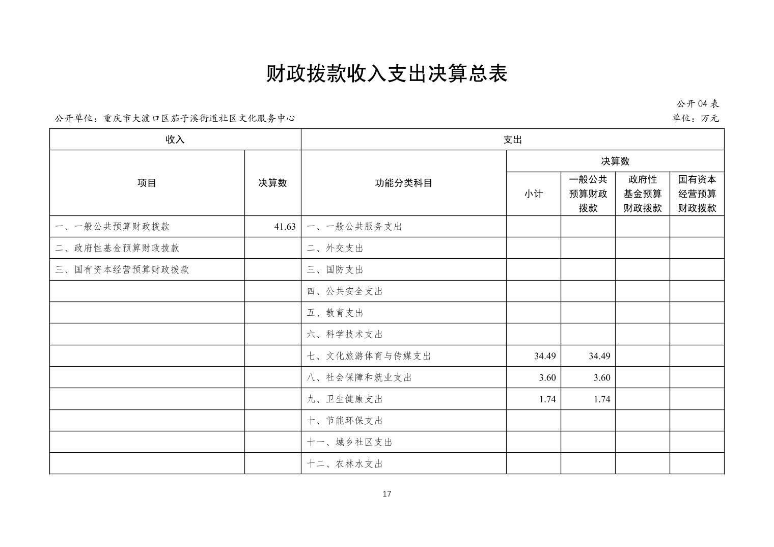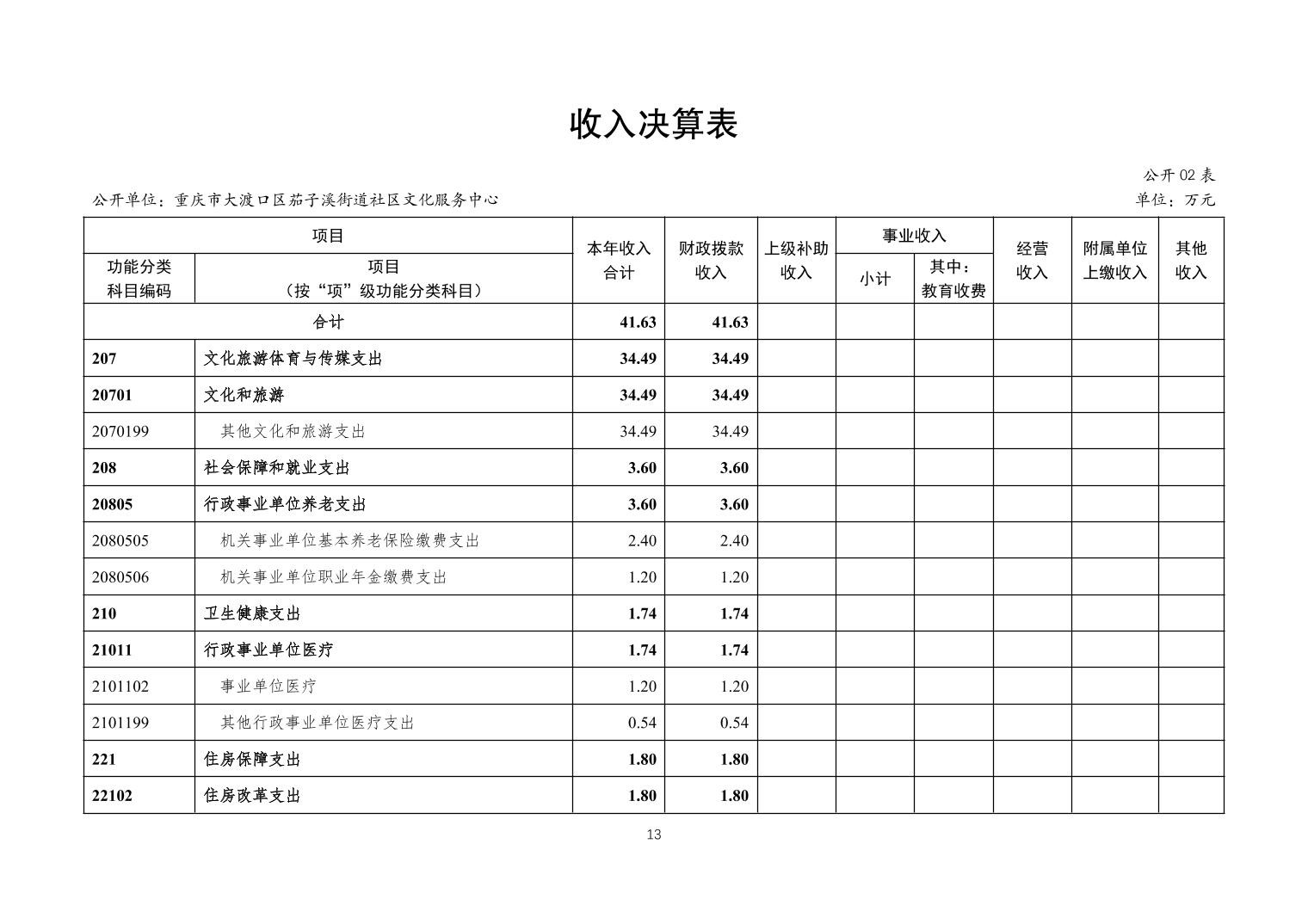 重庆市大渡口区茄子溪街道社区文化服务中心2023年决算公开说明