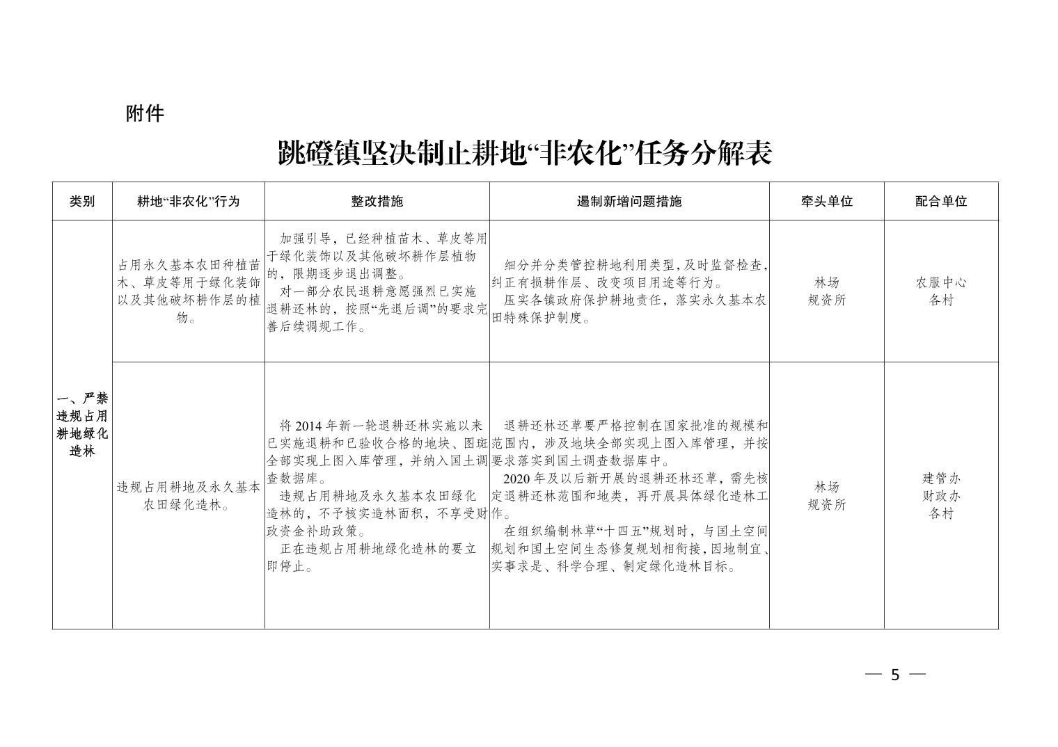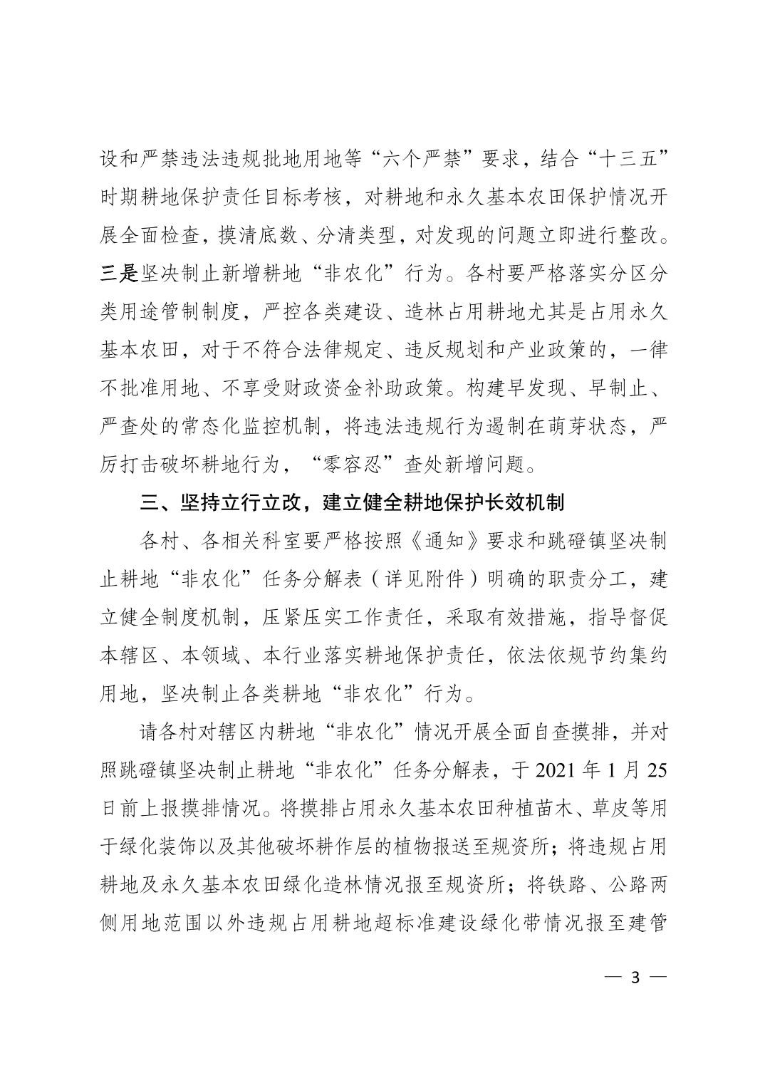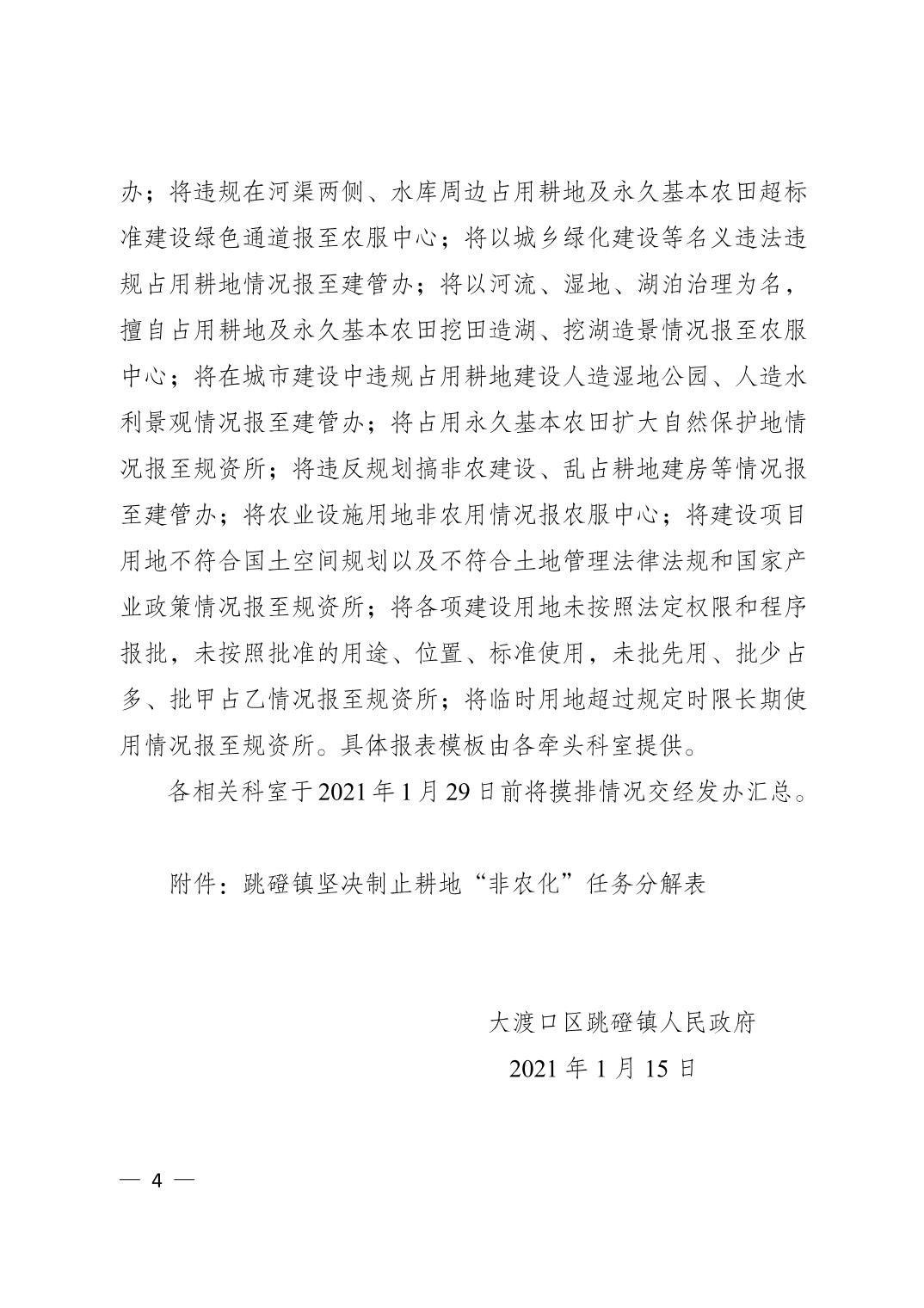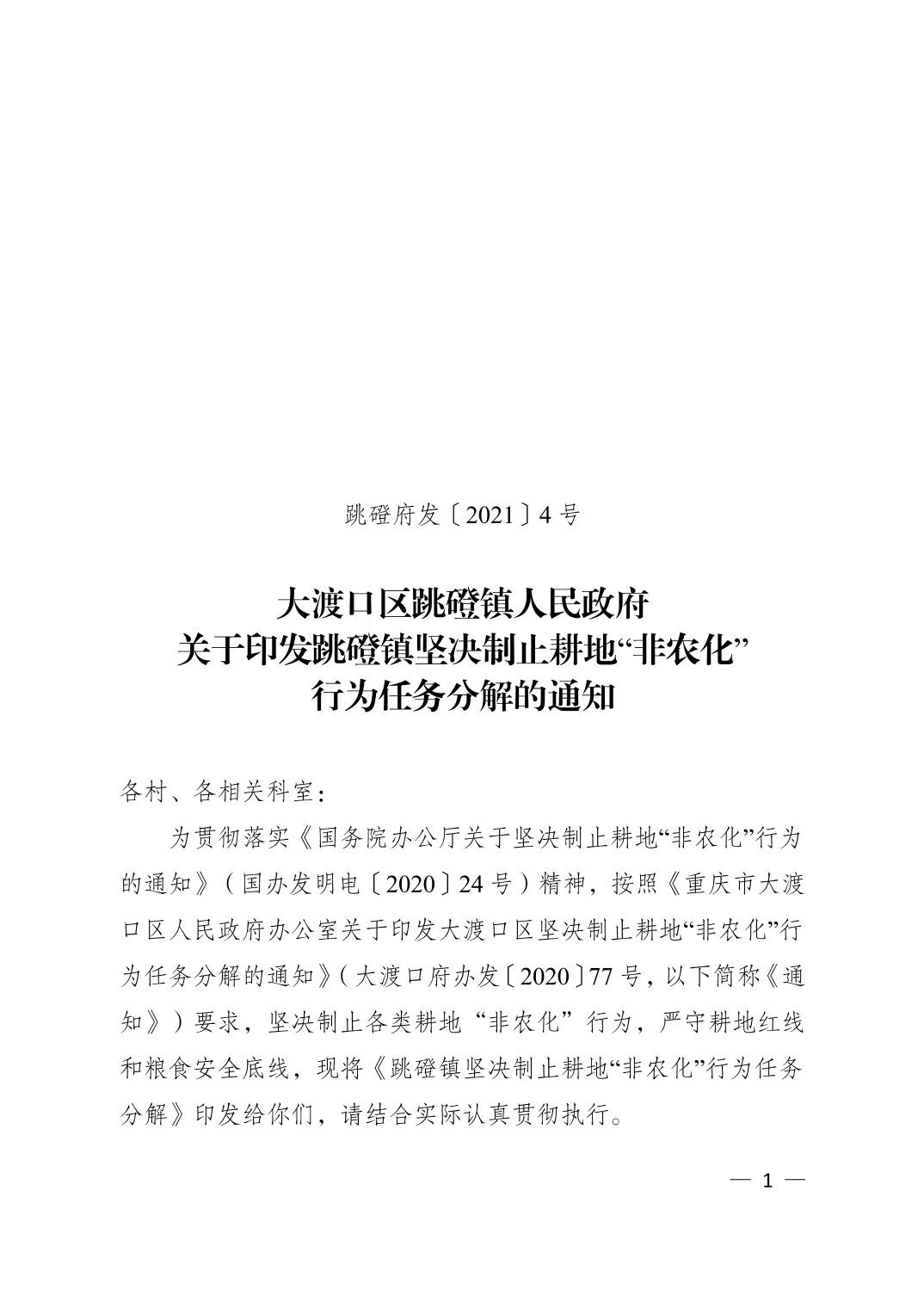 大渡口区跳磴镇人民政府关于印发跳磴镇制止耕地“非农化”行为任务分解的通知