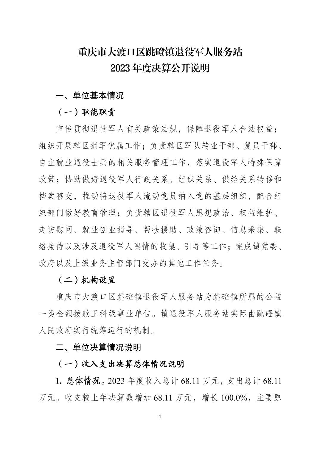 重庆市大渡口区跳磴镇退役军人服务站2023年度决算公开说明