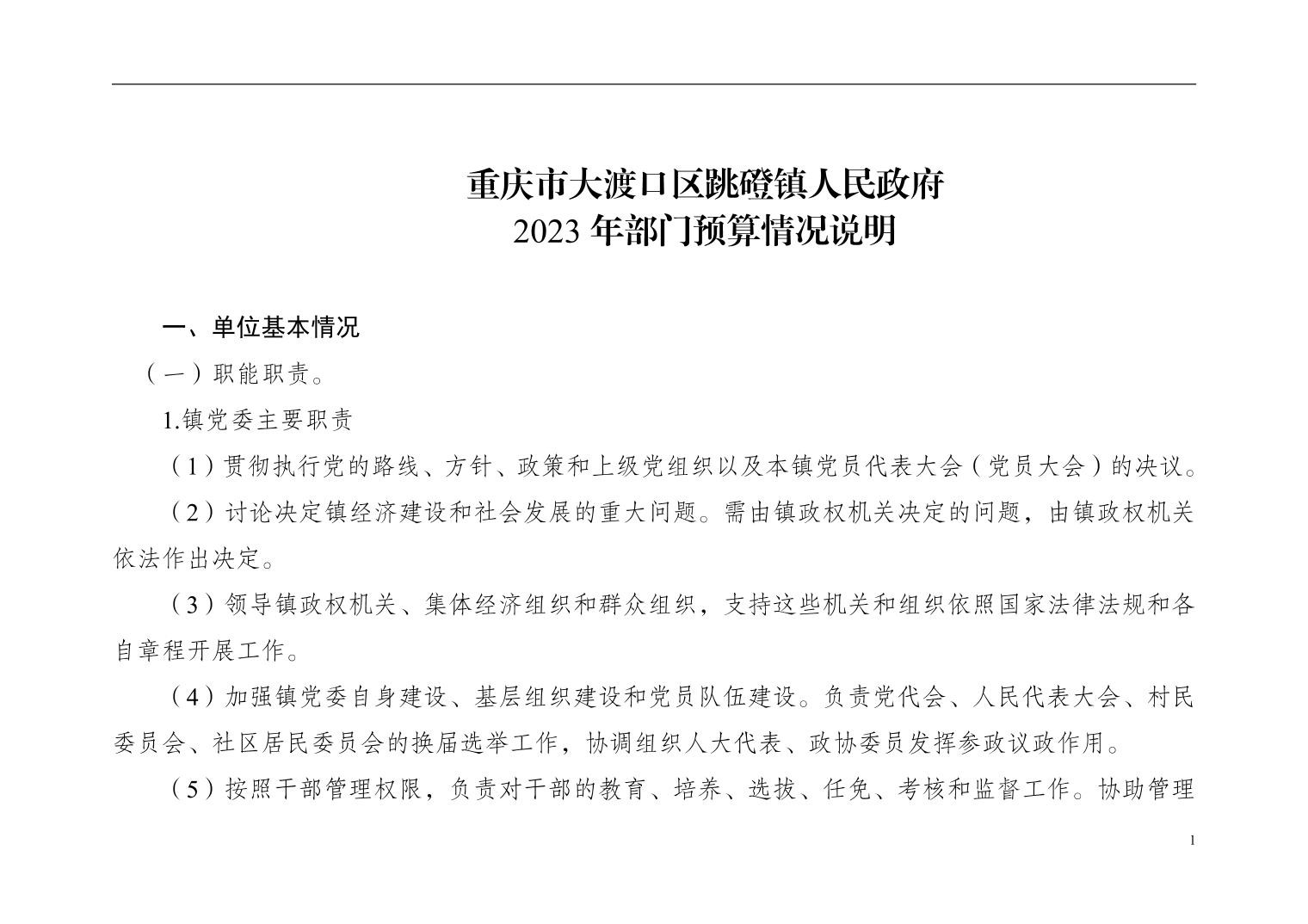 重庆市大渡口区跳磴镇人民政府2023年部门预算情况说明