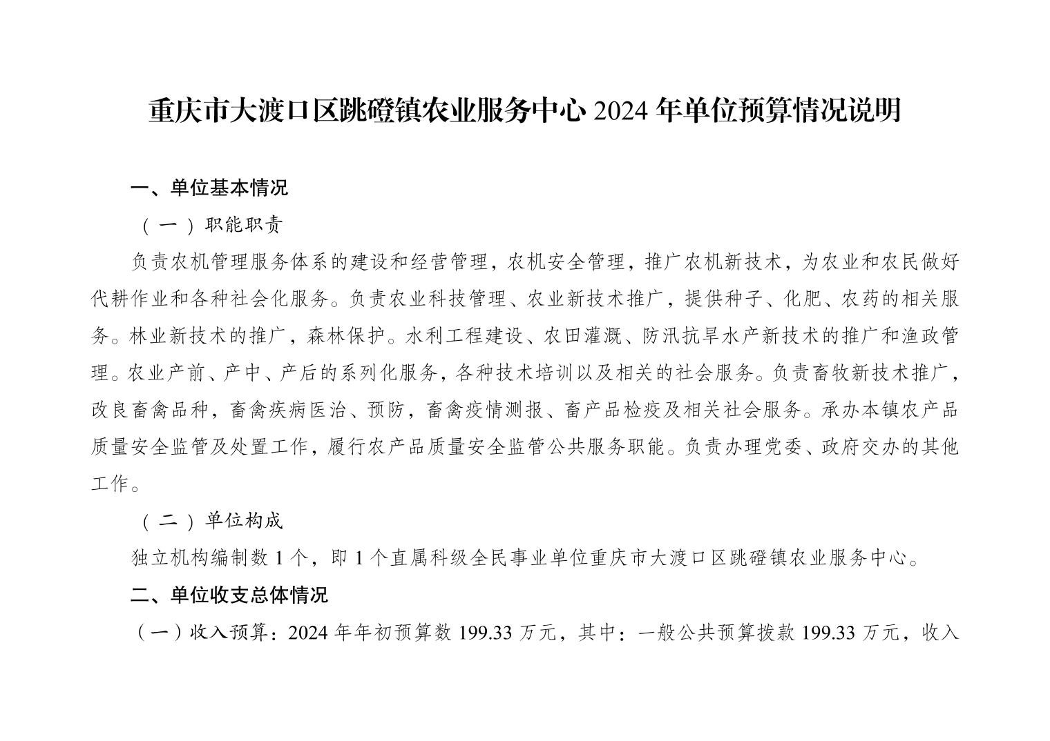 重庆市大渡口区跳磴镇农业服务中心2024年单位预算情况说明