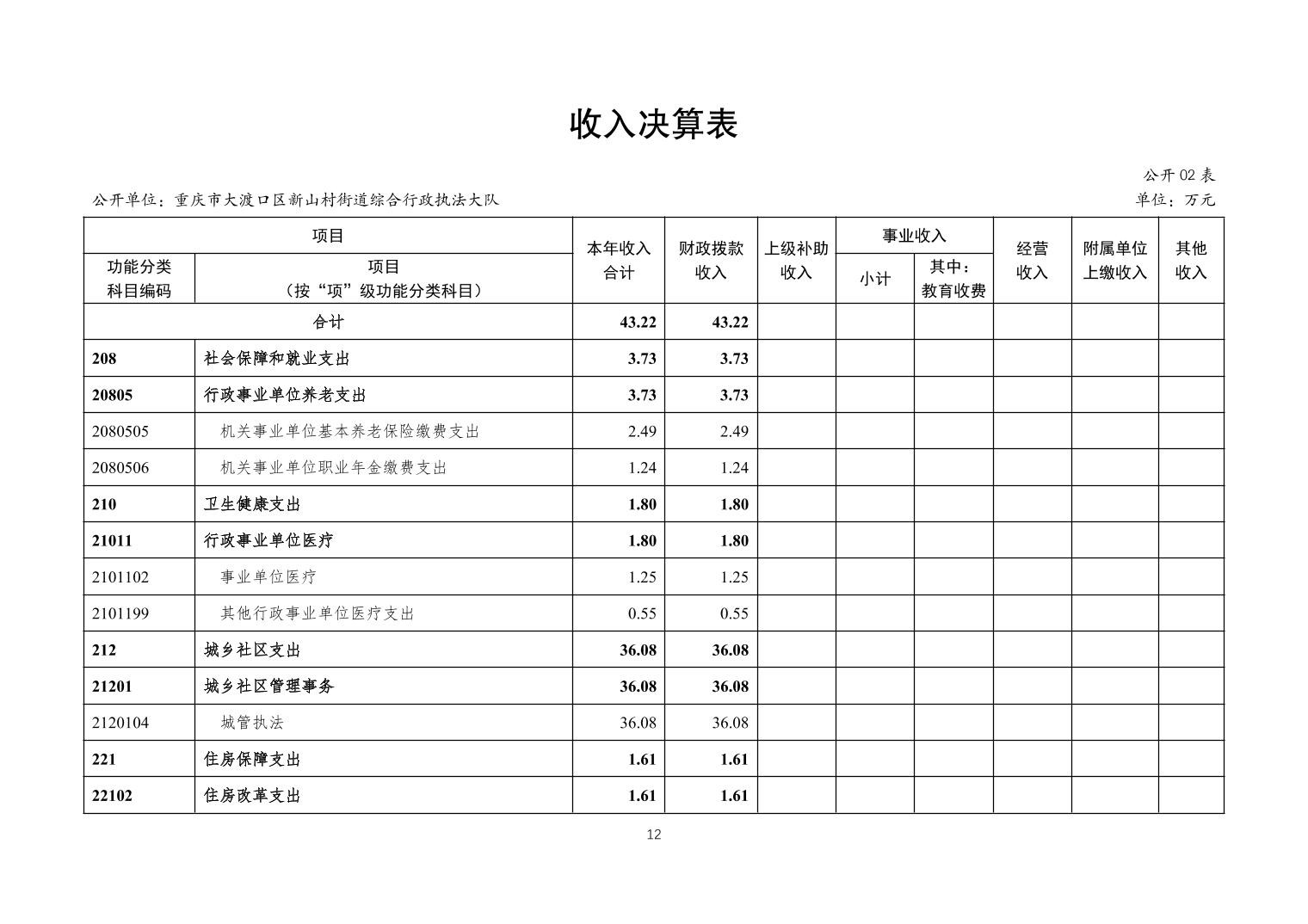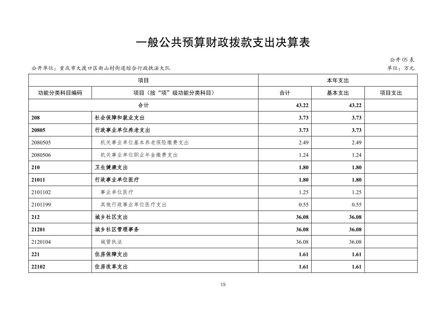 重庆市大渡口区新山村街道综合行政执法大队2023年度决算公开说明