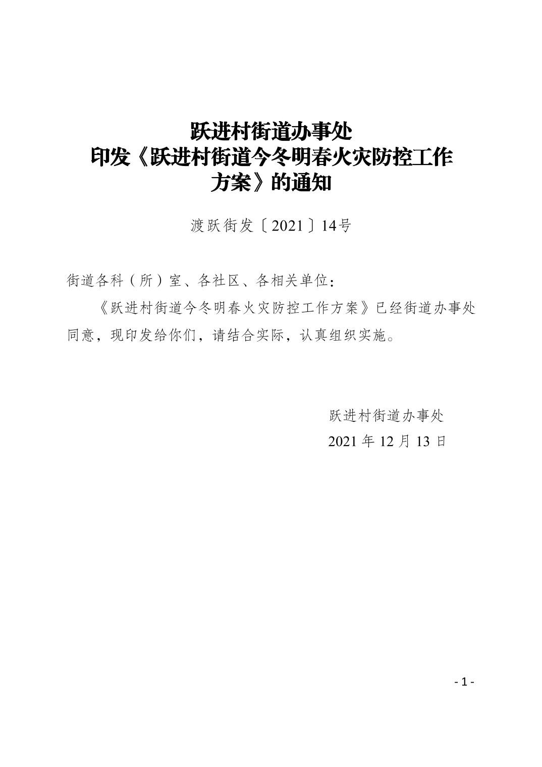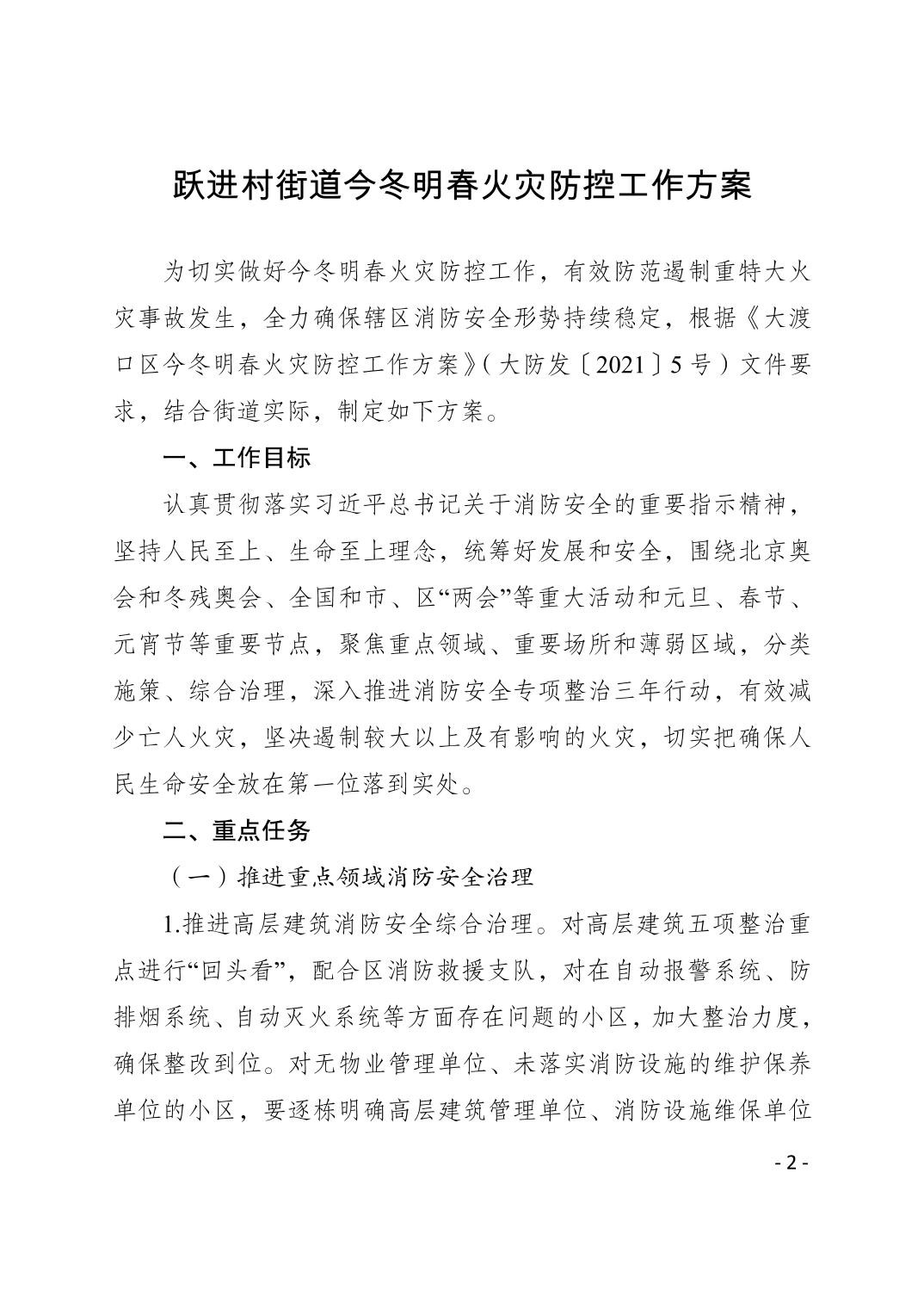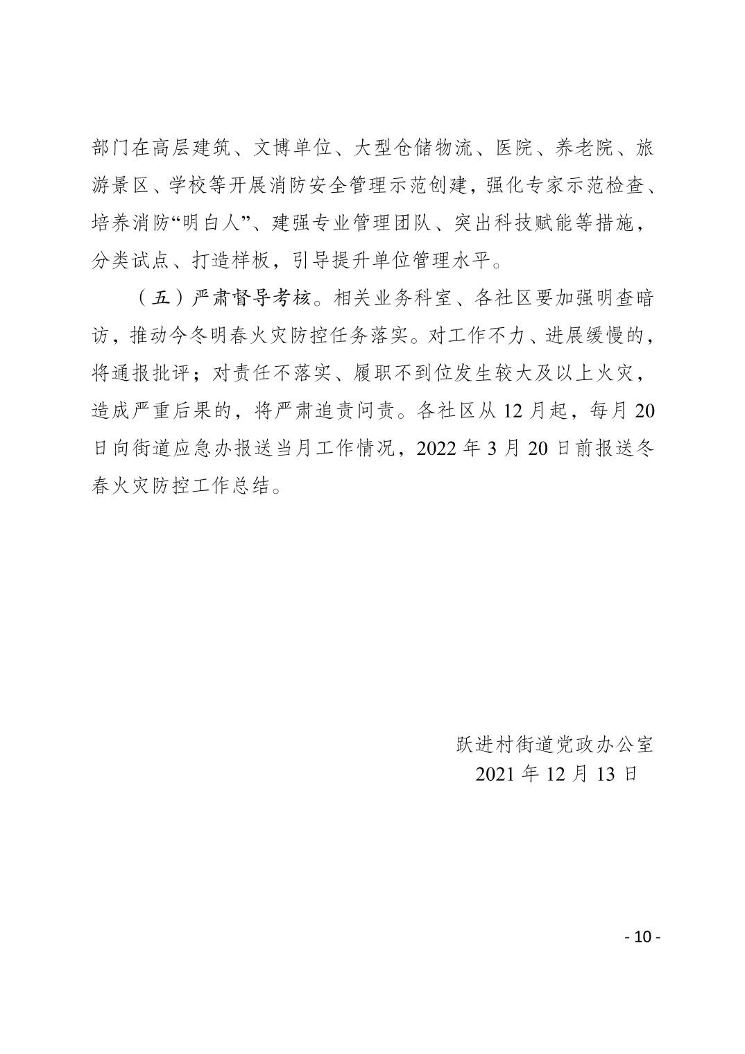 跃进村街道办事处印发《跃进村街道今冬明春火灾防控工作方案》的通知