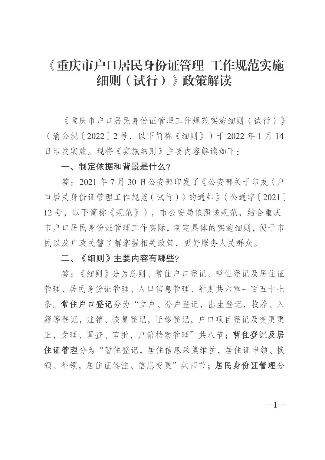《重庆市户口居民身份证管理 工作规范实施细则(试行)》政策解读