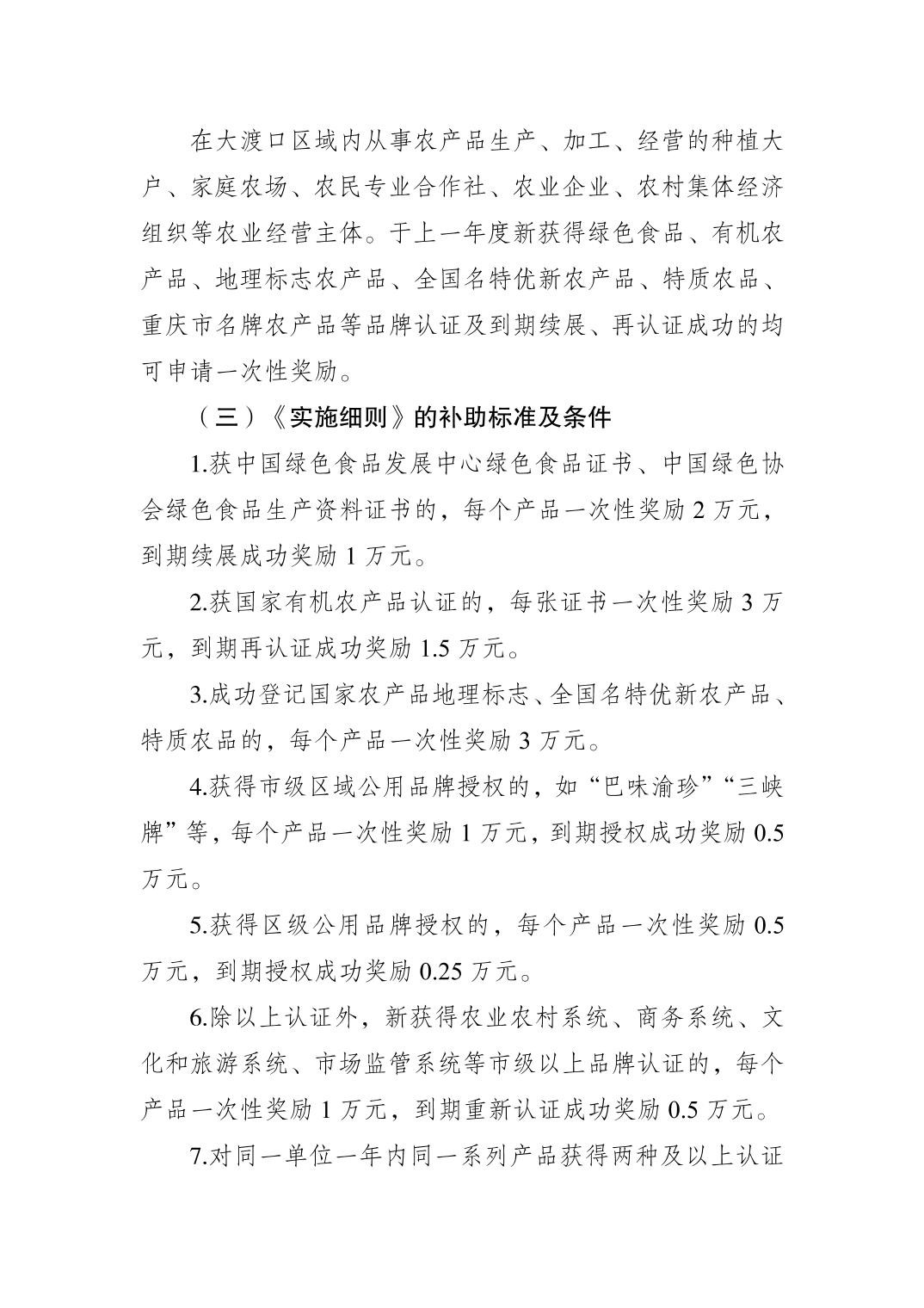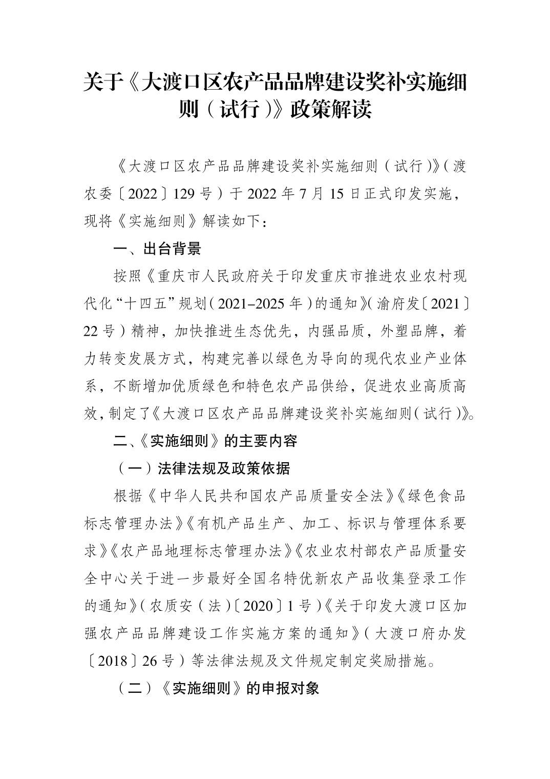 关于《重庆市大渡口区农产品品牌建设奖补实施细则(试行)》的政策解读